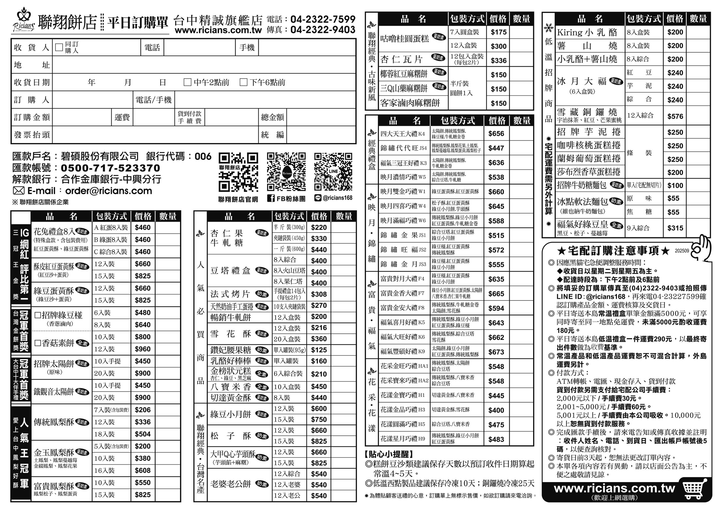 PS. 聯翔餅店保留最後訂單接受與否之權利。