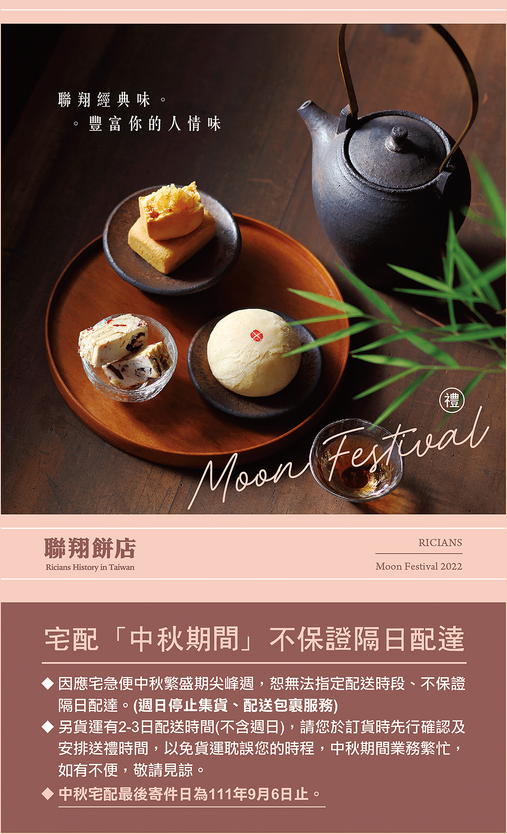 聯翔經典味,豐富你的人情味, 聯翔餅店為您獻上2022年中秋節最佳伴手禮