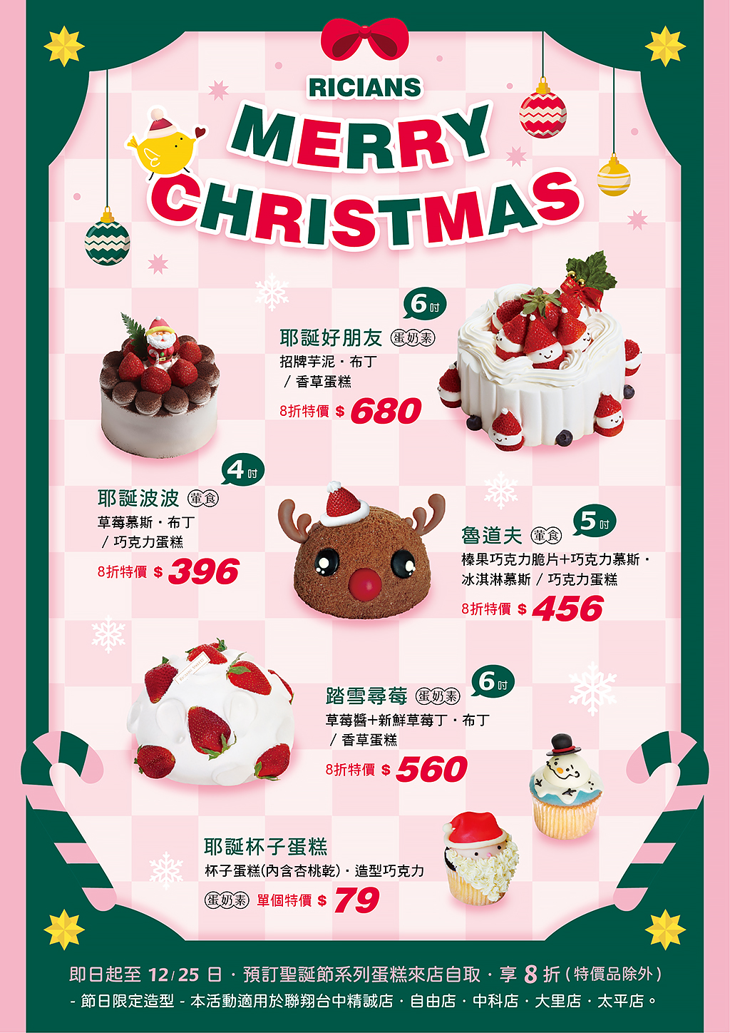 聖誕節快樂!聯翔餅店 2024耶誕特製蛋糕,現正特價熱賣中