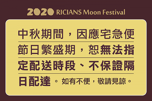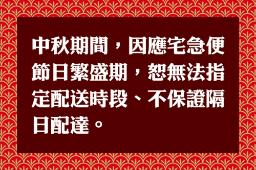 中秋期間宅配,恕無法指定配送時段,不保證隔日送達