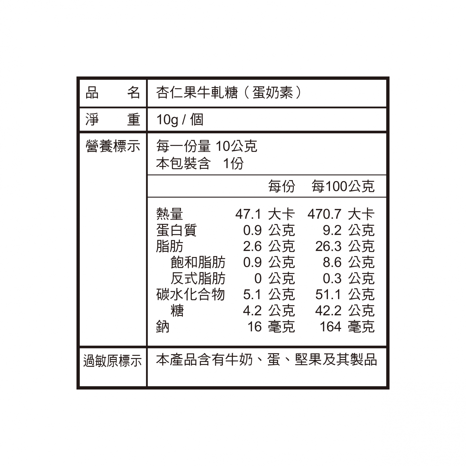 品名:杏仁果牛軋糖 (蛋奶素)