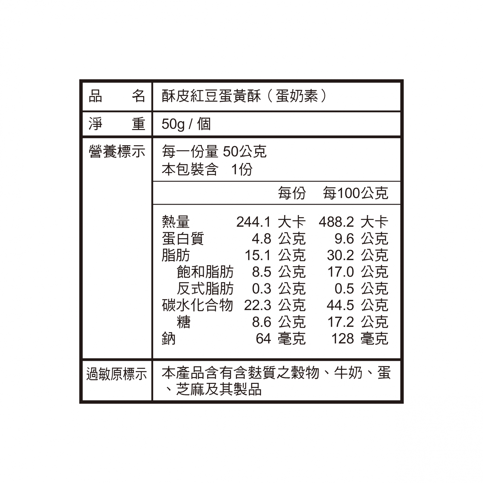 過敏原資訊:本產品含有含麩質之穀物、牛奶、蛋、芝麻及其製品